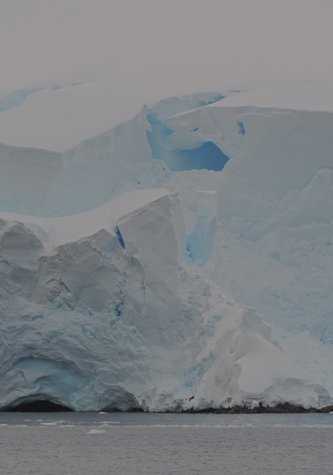 We bade farewell last night to the Black Nunataks, the stark blackness of the rock, the multi-hued whiteness of the snow and ice, and to the very last of that extraordinary color that the continent offers—the pure, monochromatic blue so captivating that we have taken myriad photographs of it in the cracks and crevices of both bergs and glaciers. Surely no one has been untouched by the astonishing depth of that color.