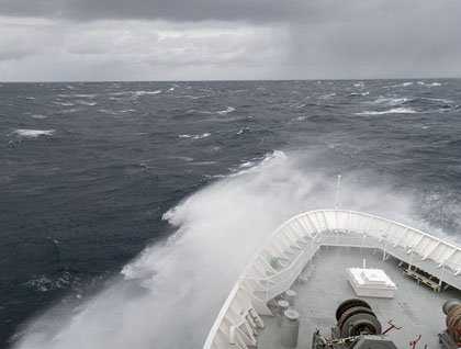 At daybreak we stumbled out of beds, collected our thoughts, got dressed, and carefully ventured out of our cabins our worst fears were realized. We had received our payback for the exceptional crossing on our way south. Or maybe it could all be blamed on our shipmates who wished and wanted to experience a “real” Drake. If not it could all be apportioned to those who merrily had whistled about the ship throughout the voyage, especially whilst on the bridge.