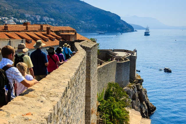 The tops of the city walls are like wide avenues, affording grand views of the both the hills above and the city below. Just to the east, the Sea Cloud’s tall masts and golden figurehead only add to the illusion of living in the past, where sailing ships would have filled the port. The modern yachts that surround her in the anchorage seem so out of place here.