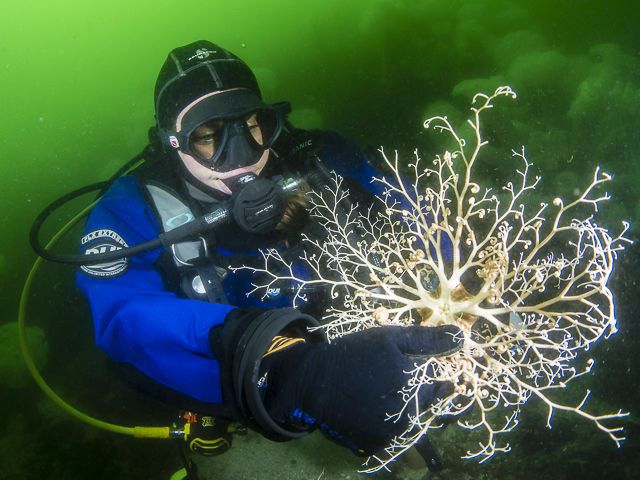 We headed out by Zodiac, by foot, by kayak – each a chosen method for exploring this seemingly unending landscape. While Zodiacs zipped around, paddles slipped below the surface of the water, and boots made their way through mud and over trees. Here in Dundas Bay we saw a vast variety of life: bears, sea otters, river otters, bald eagles, whales, jellyfish, and more. However, the animals were not the only life we found here. Nagoon berries were out in abundance filling the nearshore with bright photographic subjects. Chocolate lilies, while not yet flowering, were there to be found in the ground. At water level were tangles and tangles of kelp forest, and signs of beautiful life-filled reefs below.