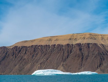 In the far northern reaches of Canada National Geographic Explorer began the day with a mind toward discovery. In such locales, few things are earned without curiosity and a spirit willingly aimed at exploration. As large icebergs passed in the distance before breakfast was even served, imaginations ran wild describing what shape they may be representing. Shortly after we were fed the expeditions began. Some chose to venture out on a Zodiac cruise exploring Dundas Harbor, while others grabbed a paddle and took to the water on our bright yellow kayaks to get an up close and personal experience with the large icebergs within the bay. Rewarded with stellar views of the landscape, which featured high mountains with sliding scree slopes, our guests were soon to find a herd of musk ox at the head of the bay. To be in such a remote locale is its own wonder, to experience rare wildlife amongst it fully rounds out the experience.