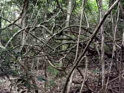 The rest of us spent much of the morning exploring the Dlinza Forest (also in the Eshowe region), where we had a chance to visit a beautiful piece of the original forest of Natal. This site is a real gem, because the drive we made to reach the forest took us through almost unimaginable stretches of treeless sugar cane fields covering the surrounding hills. It’s difficult to fathom the amount of sugar that must be produced in this part of the country. Dlinza is located in the East Africa Coastal Forest zone and is a typical tropical evergreen forest that provided us with a real feel of wildness. Although Dlinza is not a true tropical rain forest, because it receives too little rain year round, walking on the well-maintained trails took us through a dense forest habitat in which we could see many similar aspects of a tropical rain forest. This included high species diversity, immense vertically straight trees producing a high canopy, and an astounding array of lianas and epiphytes. In fact, there were parts of the forest where one could not walk off the trail very far, because the space between the lowest tree branches and the ground level was filled with twisted lianas. There were many sounds in the forest from tree frogs, cicadas, and other insects, and unseen birds, which only increased our enjoyment of the nature walk. Fortunately, a few bird species were successfully observed in the dense foliage, almost all of which were new species to our keen birders. Without question, however, the best wildlife sighting must have been two shy blue duikers, tiny forest antelopes that are seldom seen in the wild under normal conditions. One of them quietly walked parallel to us on the trail for several meters and a few photographs were fortunately obtained. The highlight of the nature walk was the aerial boardwalk which gave us access to the forest canopy high above ground and chance to experience what the vervet monkeys must feel when they are up here in the highest branches.