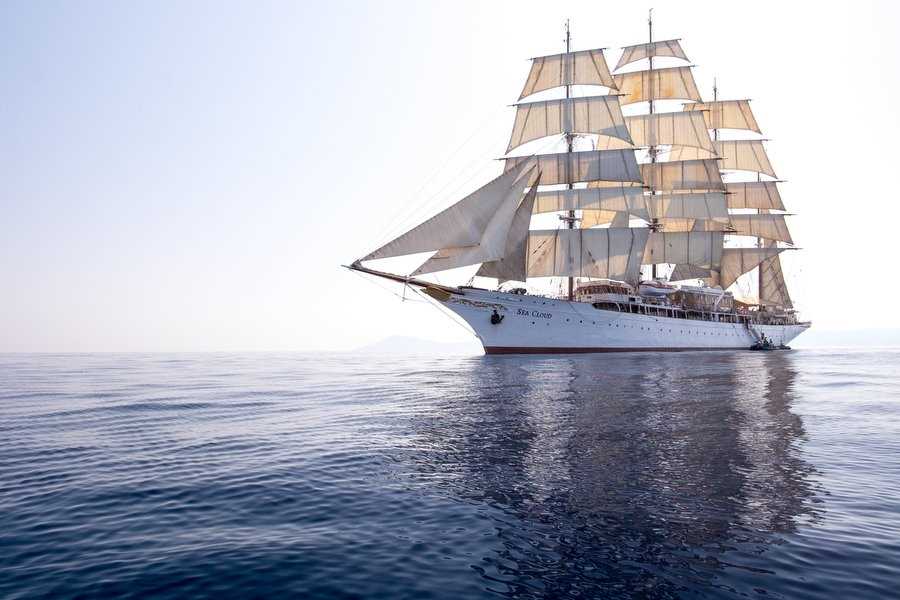 Soon, our sailors are climbing the rig one last time, setting the sails for the afternoon. A westerly breeze is the perfect time for a photo safari, and the crew lowers the Zodiacs so we can take pictures of Sea Cloud under sail. Seeing the ship from that vantage point is certainly a thrill for all.