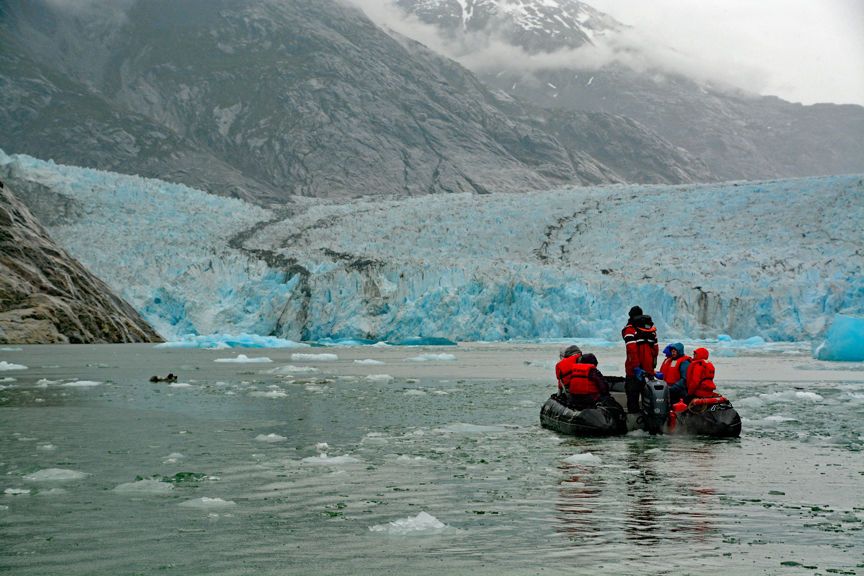 Endicott Arm is a narrow, scenic fjord that extends 30 miles into the mainland coast and is part of a large, pristine area known as Tracy Arm-Fords Terror wilderness. At the head of the channel sits Dawes Glacier, a river of ice that tumbles down from the Stikine Icecap all the way to the ocean, where icebergs form through the process of calving.
