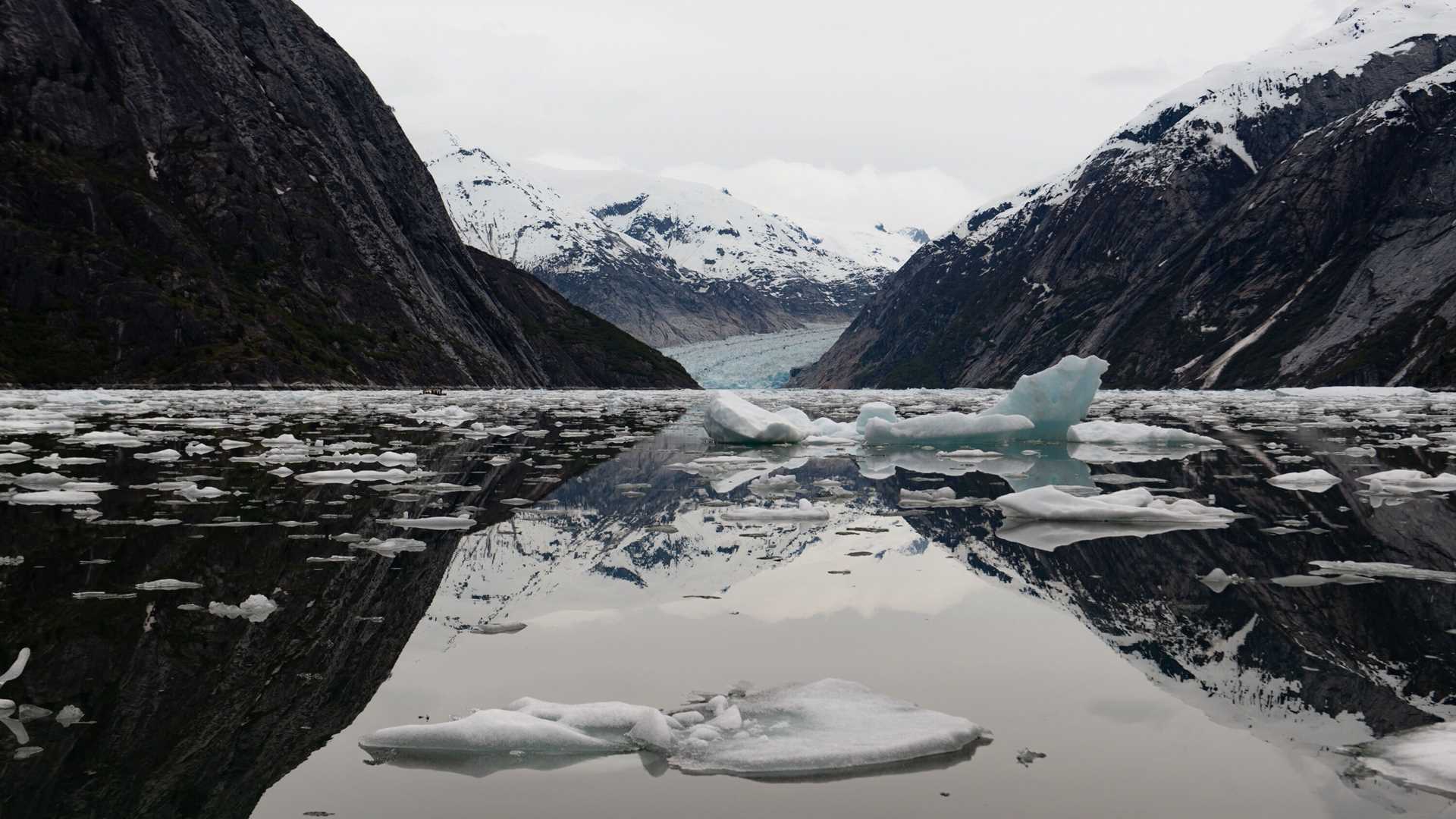 It’s not every day that a trip into the depths of a fjord, situated within a temperate rainforest, is dry and warm. No more than a few drops of rain fell on us today as we plied the ice-choked waters of Tracy Arm-Fords Terror Wilderness Area in our pursuit of Dawes Glacier. Dawes Glacier is the tidewater juggernaut that scoured and sculpted the landscape we zigzagged our way down this morning before taking to our fleet of Zodiacs for a day on the water. The day included not only ice tours but about 50 splashes (followed by screams) as over half our ship plunged into the glacially infused water.