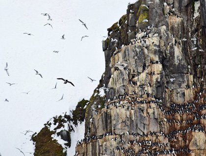 During the night, we set out south from Juneau and woke to the steep glacier-carved walls of Endicott Arm. As National Geographic Sea Lion approached the end of the passage, a dense patch of ice pieces floated between the ship and Dawes Glacier. Formed from ice calving into the ocean from the glacier, these small “bergy bits” and “growlers” serve as a resting and birthing area for the harbor seals that have made their way up into the passage to do just that. We saw many pups, some just hours old, lounging on the ice with their mothers or trying out their first swimming lesson.