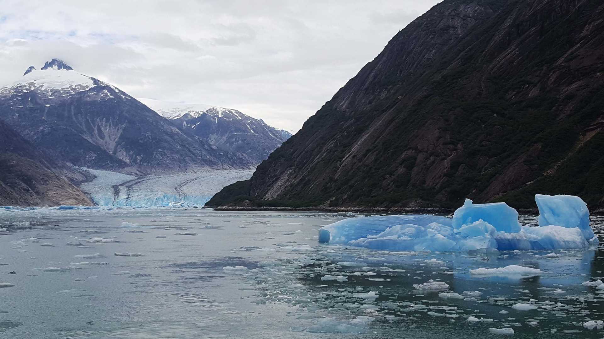 Toward the end of the day, it was a special treat to take Zodiac boat rides toward the face of the Dawes Glacier. On the way there, we saw dozens of harbor seals, in the water and on the icebergs, and cruised by waterfalls and hundreds of blue icebergs.