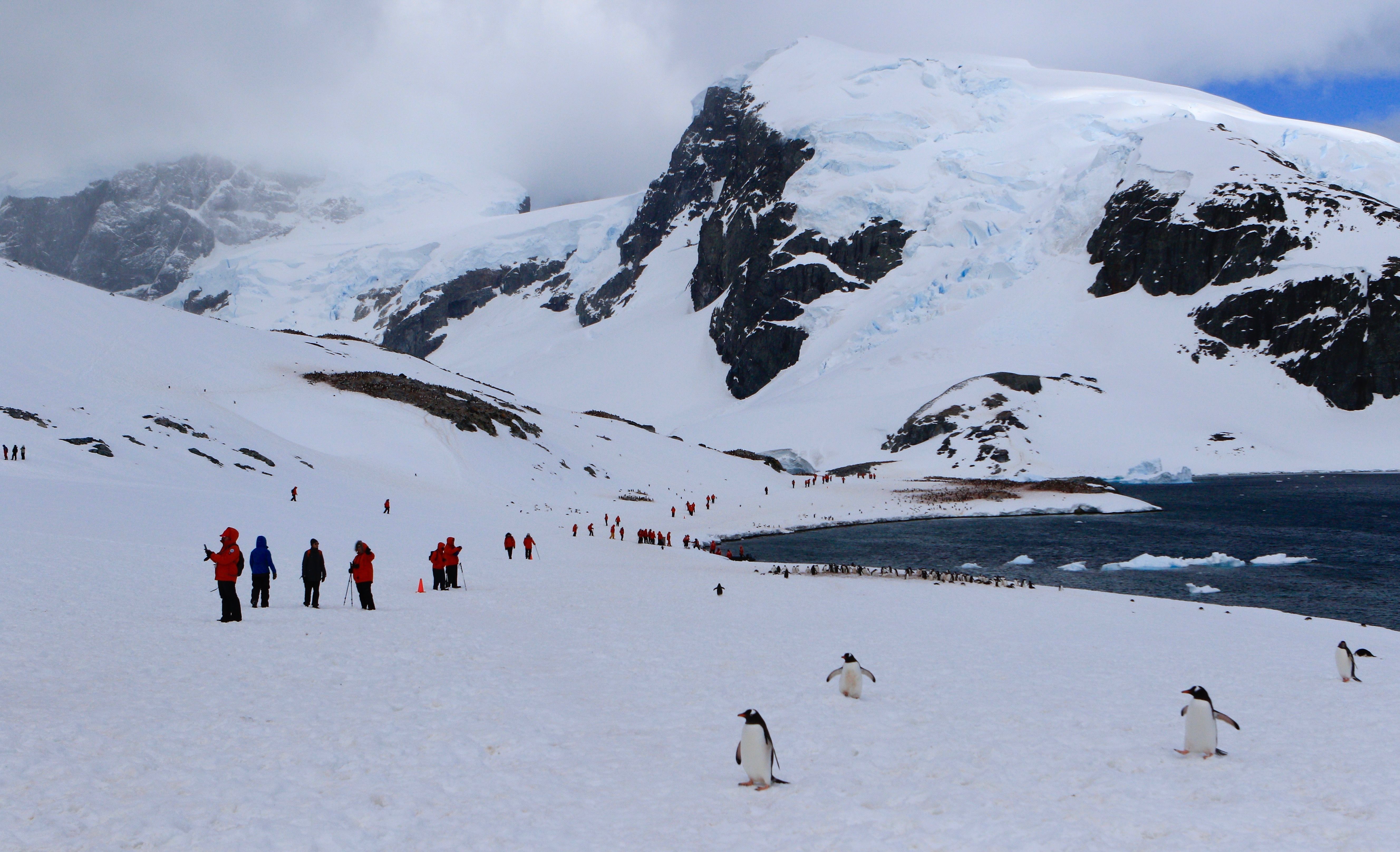 This morning the National Geographic Explorer slipped from the grip of the fast ice where we spent the night in Wilhelmina Bay. Cruising down the Gerlache Strait we rounded the bend into the Errera Channel where we spent the day exploring ice and gentoo penguin colonies. Our first landing at Cuverville Island was a bit brisk but that did not stop the intrepid from climbing up the snowy slopes for the reward of a view and to butt-slide down the hill. For those who chose to explore the lowlands, the largest gentoo colony on the peninsula was full of fascinating interactions. Zodiac cruisers bundled up for a beautiful cruise among the ice that draws people to this end of the world.