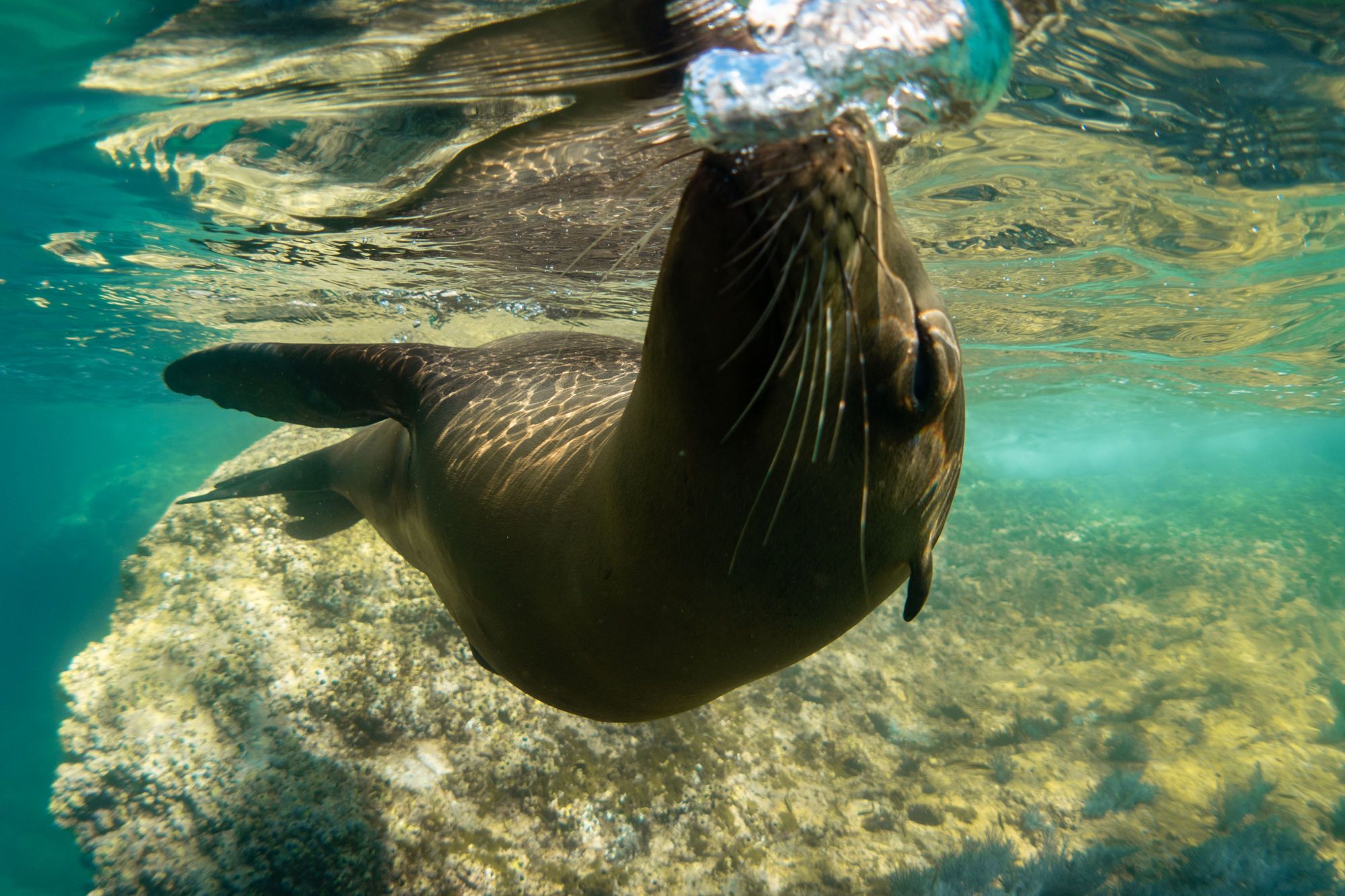 We began our morning with a great breakfast while anchored in Garner Bay. All the activities in the morning included time in and around the warm Galapagos waters. Some went deep-water snorkeling and had the chance to see a variety of fish distinct in both shape and color. There were marine iguanas feeding in the water, sea turtles, and a bunch of sea lions following and playing with us! Other guests went to the beach to get some snorkeling lessons provided by our expert naturalist, where they also had the chance to enjoy additional time with the sea lions. After, we all gather to conclude our adventures at the beautiful coral beach. We were surprised by the wonderful hotel staff over an amazing Andean lunch. Afterward, we sat in on a series of photography lessons from naturalist Walter Perez.