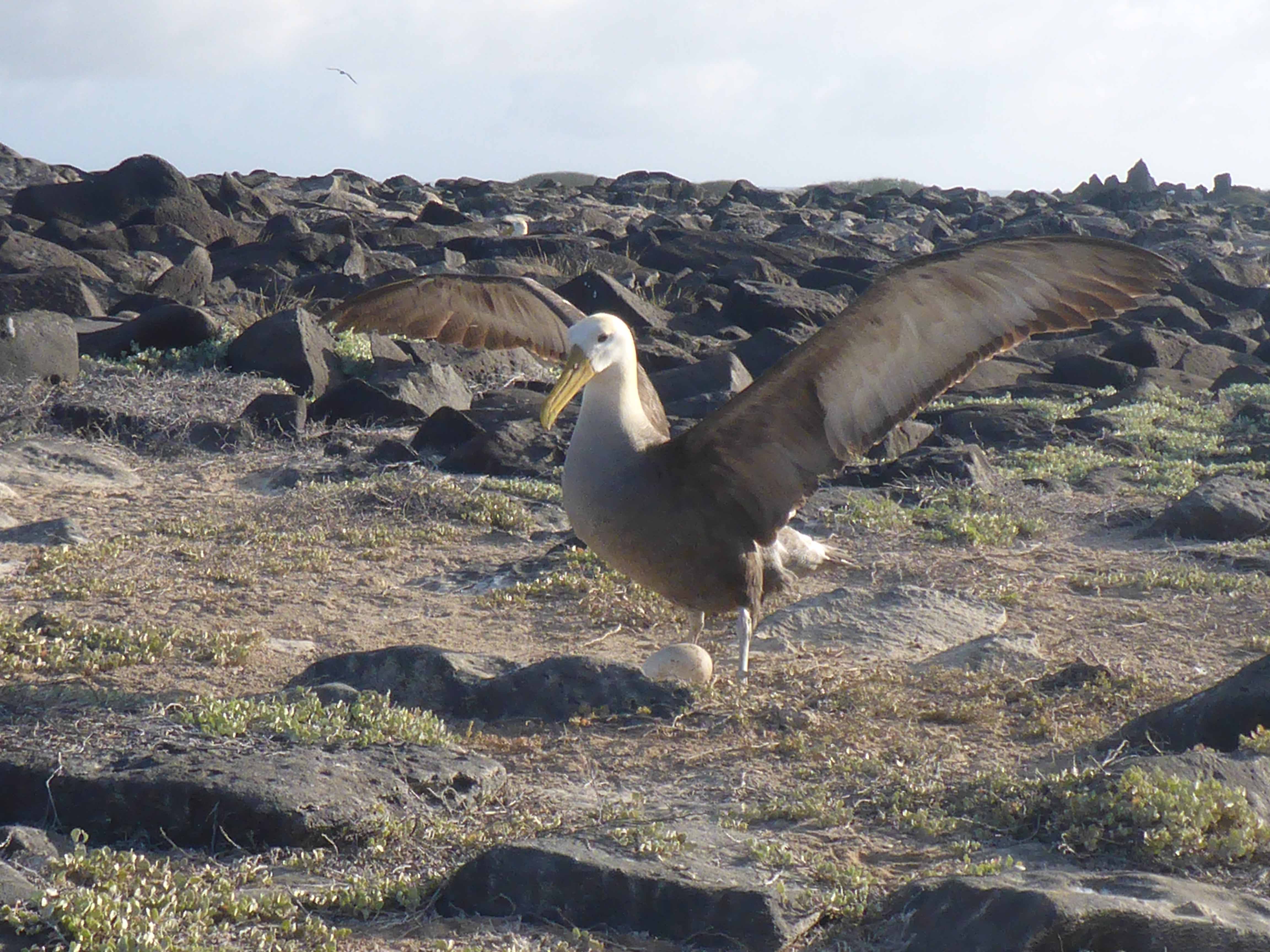 In the afternoon we landed on Punta Suarez. It was an overwhelming experience to see the combination of the different sea birds spices together along the trail. The famous waved albatrosses, swallow-tailed gulls, Nazca and blue footed boobies, red-billed tropic birds were observed. We learned today how to differentiate each one from their song and we saw them mating, taking care of eggs and baby chicks. We also saw land birds such as the Galapagos hawk, the Galapagos dove, the warbler finch, and the yellow warbler. All of them make this ecosystem a unique destination.