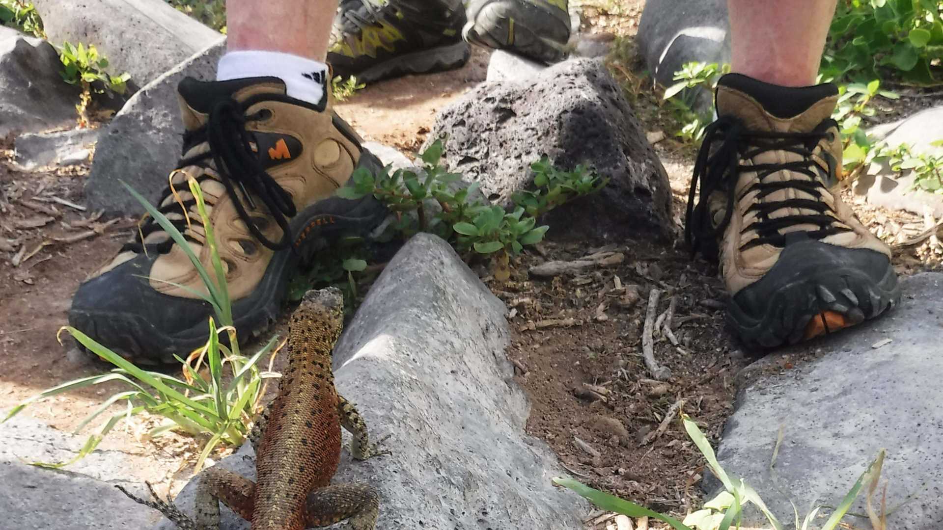 Lava lizards will surprise us on every step. Bigger on size than those ones that we saw on San Cristobal Island the day before, with beautiful patterns, they took the attention of everyone on the group. Females will show a bright red color on their thought making it very easy for us to recognize and differentiate females from males.