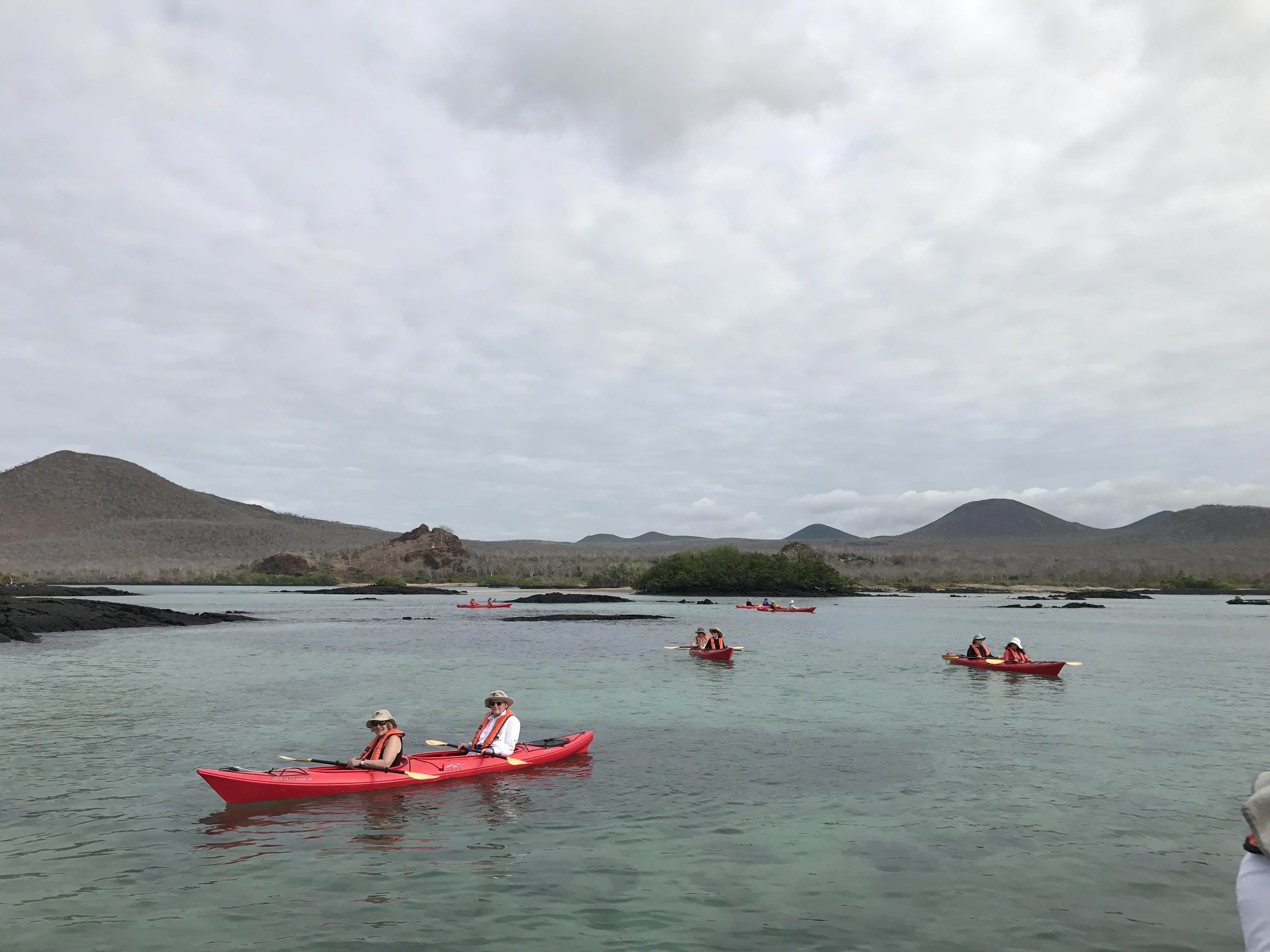 Today we visited the magical island of Espanola, also known as Hood. Espanola is one of the oldest island we will get to visit this week and one of the highlights of this expedition due to its high percentage of endemism and overwhelming wildlife. Espanola island is a magnet for sea birds, sea lions, marine iguanas among other Galapagos species. We woke up to sunrise to kayak in the beautiful Gardner Bay and then went in the water for some snorkeling in the crystal clear water that bathes this island. Gardner bay lies along the northeastern of the island where a flawless white sand beach stretches along its coast, home to a colony of playful Galapagos sea lions. In the afternoon we visited Punta Suarez as we hiked along the trail having very close encounters with the wildlife. As we walked along this trails and saw the tameness of this beautiful creatures we could only stop and wonder how beautiful would the world be if we could coexist like animals do in the Galapagos Islands.