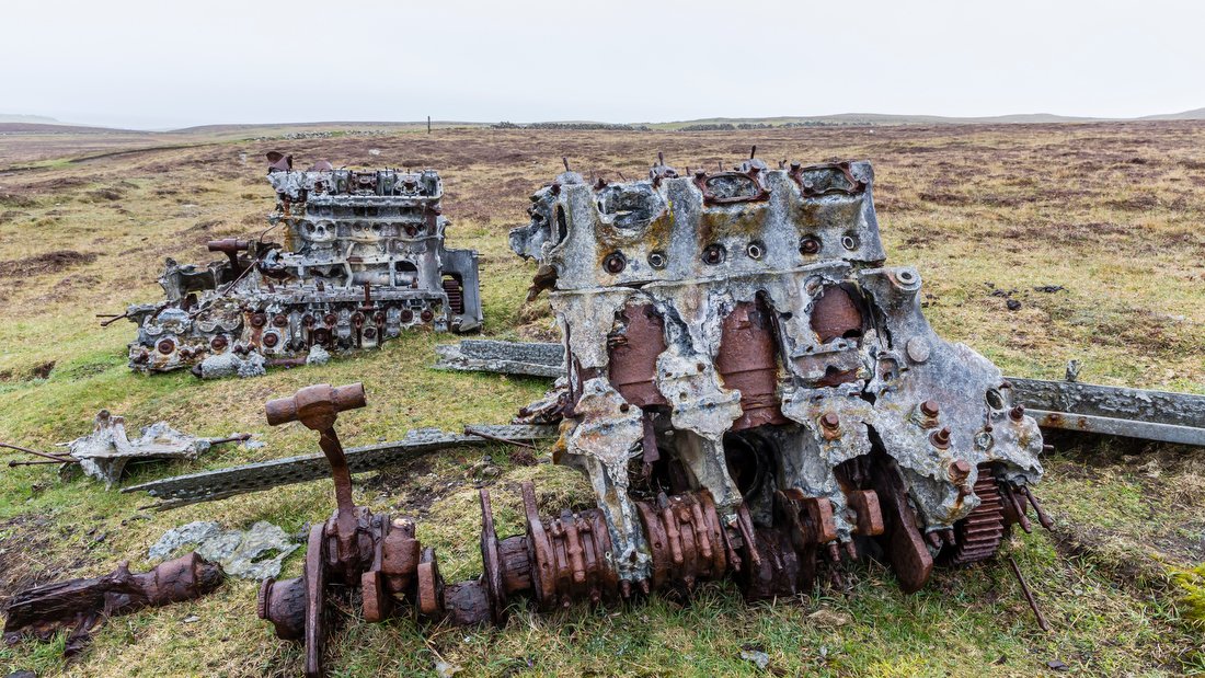A personal highlight of the morning was the discovery of the wreckage of a WWII German weather reconnaissance Heinkel plane. The converted bomber had been forced from the skies over Fair Isle by British Hurricane fighter planes on January 17th 1941, grounding in a fiery crash which left two of the five crew aboard dead. Lieutenant Karl Heinz Thurz, the surviving pilot of the German plane, was picked up off Fair Isle with the rest of his crew a few days later, on his 21st birthday! The twin engines, parts of the fuselage, and the tail section still lie scattered amongst the rolling hills of Fair Isle.