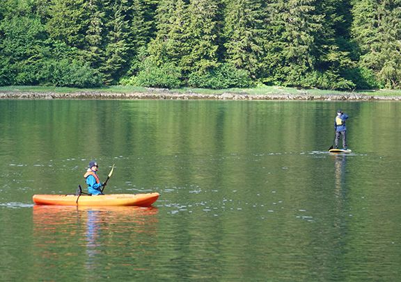 Emily Pickering gave an engaging and informative presentation on pinnipeds (seals, sea lions and walrus), which set the stage for our afternoon boat tours of the Inian Island and the chaotic currents where Icy Strait meets Cross Sound. The Pacific Ocean floods and ebbs quickly in these passages to supply water to Alaska’s interior waterways, creating a productive environment for kelp and fish, where not only sea lions thrive, but also sea otters, humpback and killer whales, pelagic cormorants, gulls, and eagles, who all find abundant food here and a good place to live.