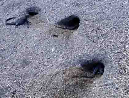 This morning we disembarked at the only visitor site of the island, Punta Espinoza. The name of the site comes from the incredible number of marine iguanas living here. At this time of year, the iguanas have mated, and egg-carrying females start digging a nest for their precious future babies. During our walk we observed different stages of the reproduction of this species, as well as the unfortunate disappearance of some which had become the prey of Galapagos hawks. Also some sea turtles warming up their bodies and playful baby sea lions entertained us.
