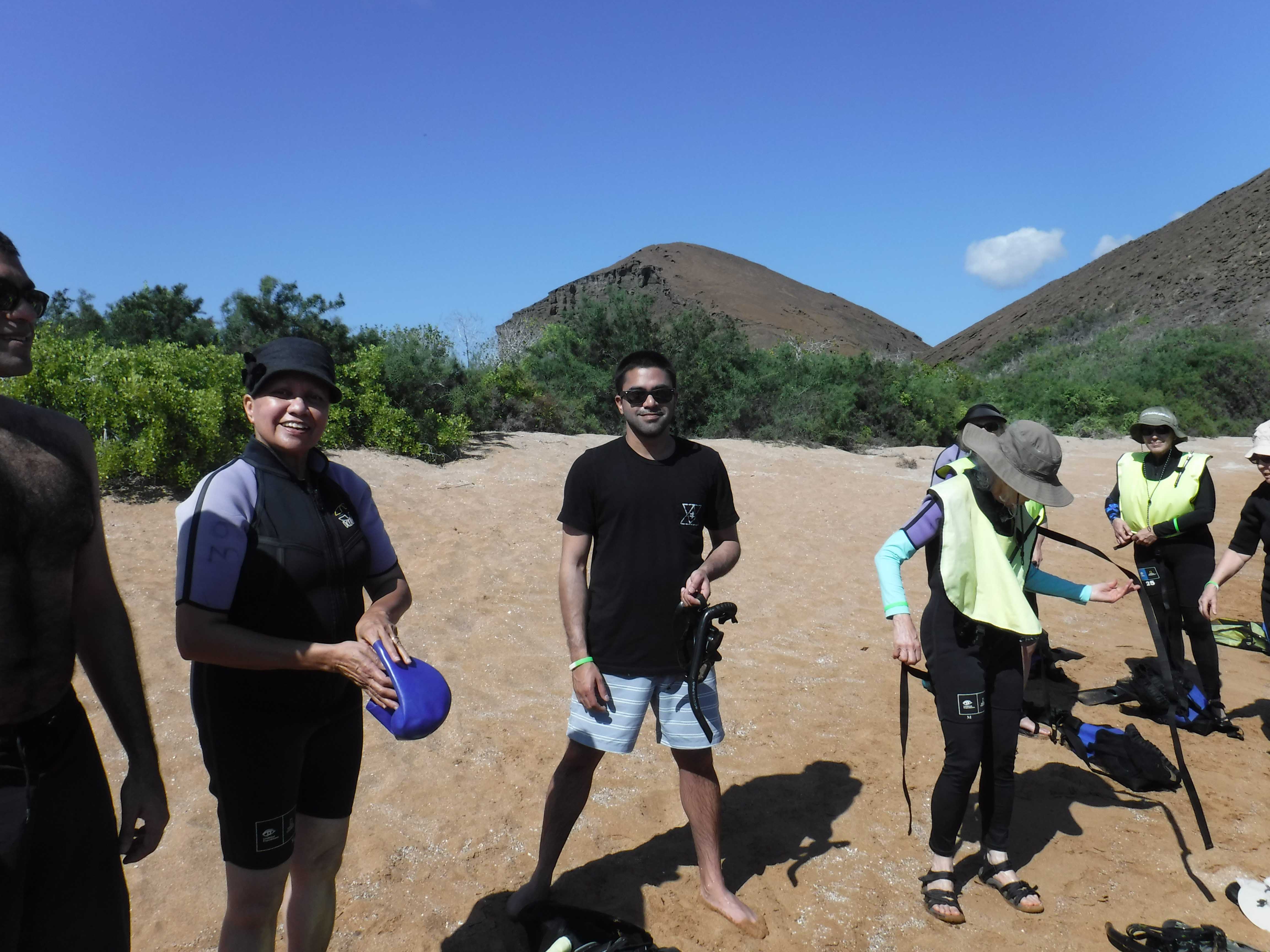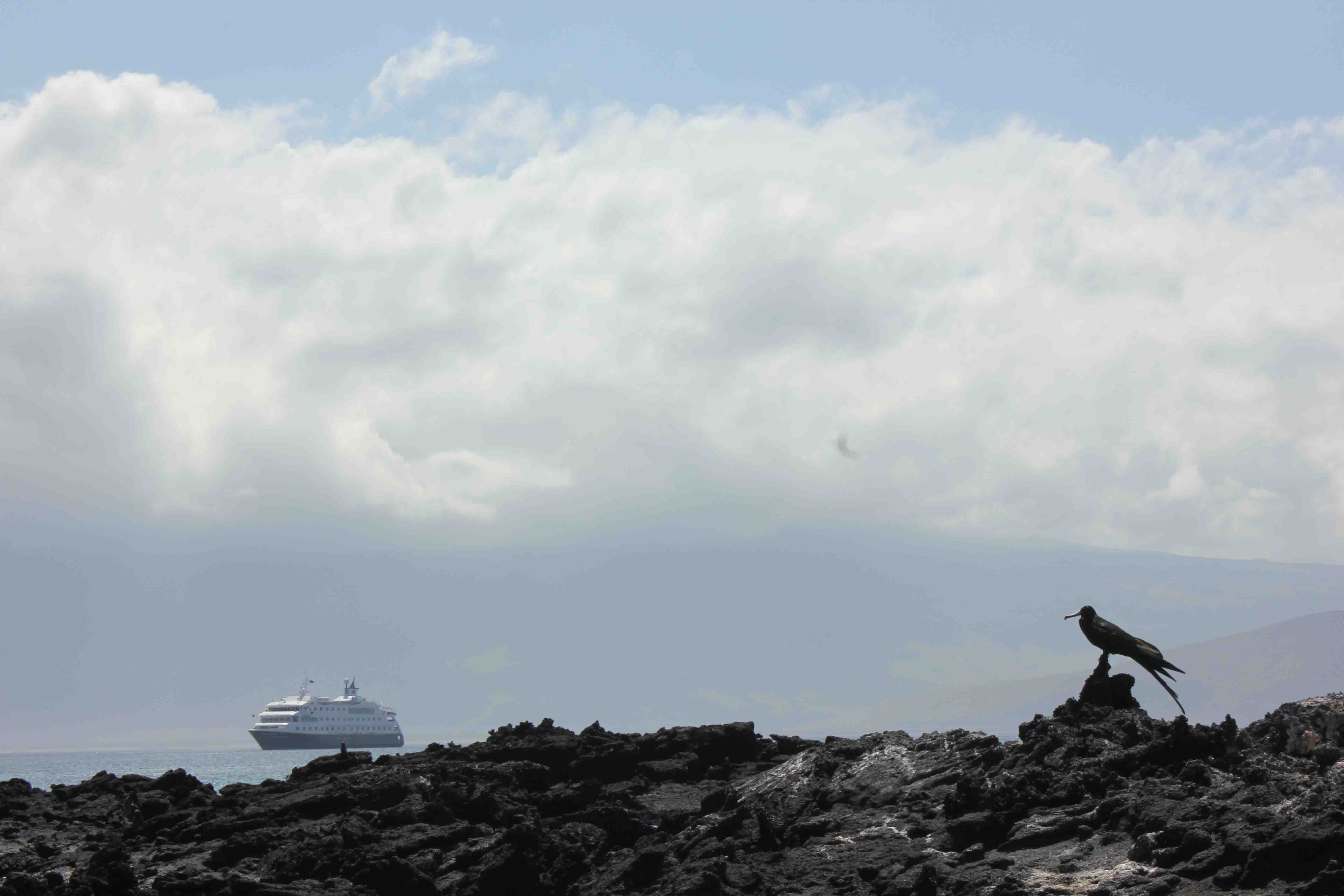 In the afternoon we visited Punta Vicente Roca on Isabela Island, where we snorkeled from the Zodiacs, seeing many green sea turtles. Later on, during a Zodiac cruise, we saw blue-footed boobies, Nazca boobies, and Galapagos fur sea lions resting in the lava rocks.