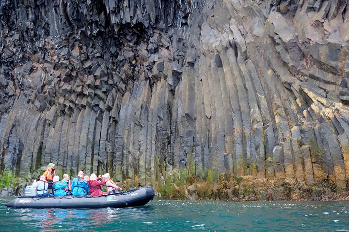 Wohoo – we have finally kicked off our first full Iceland circumnavigation trip of the season and what a first day! First thing in the morning we lowered our zodiacs and dashed ashore to the beautiful Flatey Island where time appears to be standing still. As we walked around the island we saw old tractors and colorful old houses that used to be lived in all year round but now only two farmers recide all year round and the rest is used as family timeshares during summer months. Flatey is located on Breiðarfjörður bay and is the biggest island of over 3.000 small islands and skerries. The area supports 230 species of vascular plants and around 50 breeding bird species. To name a few we saw puffins, guillemots, arctic terns, fulmars & purple sandpipers. Aside from the amazing nature outing we had a special music performance by local Icelandic musicians just for our group.