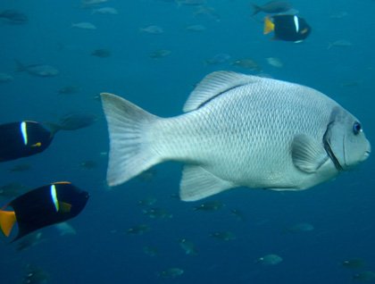 After this fun experience we took Zodiac rides around several rocks and little islets looking for more surprises. Sea lion colonies were found everywhere. The bulls were very active. Cattle egrets rested on red mangrove branches. Great blue herons looked for dinner, as frigates marauded around stealing food. From time to time, marine turtles brought their heads up to the surface to take some air.