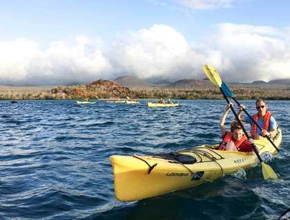 After the visit to the post office barrel we headed on a Zodiac ride along the coast in search of wildlife among the red mangroves and the intertidal zone. We spotted some young black tip reef sharks, a large rookery of cattle egrets, sea lions, rays and a couple of Galapagos penguins getting ready to rest for the night on some lava rocks. While some guests were on Zodiacs, others chose to kayak along the same route hoping to get a closer look. We were in luch because a group of baby sea lions followed us for a few minutes.