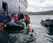 After breakfast the National Geographic Endeavour was relocated to a small islet known as Champion. A Zodiac ride allowed us to spot a variety of sea birds such as shearwaters, brown noddies and tropicbirds that nest in the narrow cracks of the ancient lava flows. Also, this is the only island where a small population of the Floreana mockingbirds, which was driven to extinction by cats, rats and other introduced predators on the main island, still exists. Our morning activities ended with snorkeling and glass-bottom boating among a great variety of fish and sea lions.