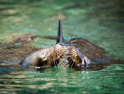 This is an island of beauty and mysteries, an island which has it all, from flamingos to colorful fish, from shark schools to mangrove lagoons, from cinder volcanoes to interesting stories about crazy baronesses and toothless dentists. We started our activities with the first light hours, taking advantage of every minute under the sun, and under the water as well. Punta Cormorant, a before breakfast outing, welcomed us with the aroma of holy trees, similar to incense, but sweeter. We encountered flamingoes, finches, and sea turtles, learned about the arrival and establishment of plant species and many wonderful tips about photography. After breakfast we played with sea lions while snorkeling around Champion islet, at its best in visibility.