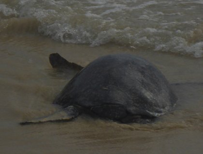 We woke up with the sunrise to visit Punta Cormorant and a wet landing took us to a Greater flamingo lagoon located just a little inland. There were mosquitoes, but it didn’t matter as the flamingoes were displaying really close to the lagoon shorelione. There were about 30 of them who were feeding slowly and calling from time to time. With the early morning sun it was a picture perfect location and our guests were actually thankfull for the early wake up call. From the lagoon we went inland through a gravel path until we reached a flour-white sandy beach where several female Pacific green turtles were making their way to the water after an all night labor of egg laying. They were exhausted by the effort and were reluctant to get in the water as several males were waiting for them to take advantage of them being tired. The event lasts for about eight hours and therefore females are unwilling participants as they must support the weight of the males during copulation. Larger males tend to drown the females, so selection has favored smaller males. I took the time to explain that the sex of the offspring is determined by the temperature of the nesting site. Females need 29.5 degrees while males need about 28 degrees Celsius.