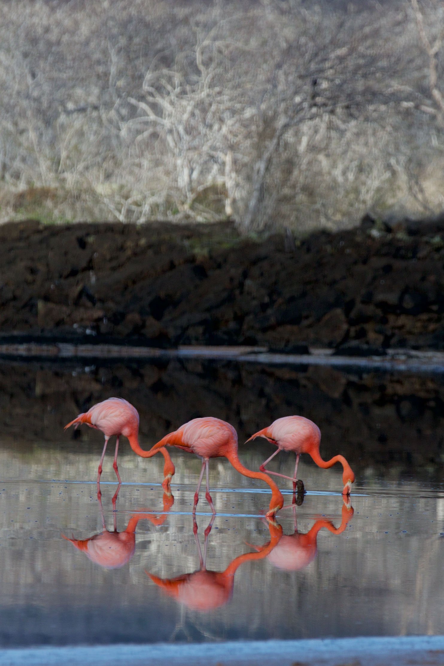 This journey brings us to new and exciting contrasts at every turn as we awaken at Cormorant Point on Floreana Island. An early morning landing awaits us as the clouds rise and a sparkling olivine beach is underfoot. The slowly rising sound of Darwin finches and Galapagos flycatchers tells us that nature never stops as we note a strange call in the distance. After crossing an isthmus, we find a white sand beach with remnants of last season’s nests from the Pacific green sea turtle. Small semi terrestrial hermit crabs patrol the dunes looking for sustenance. The occasional frigate bird flies overhead also searching for food. As we get close to the shoreline we notice diamond stingrays feeding in the shallows with the wave action upturning small crustaceans allowing the stingrays to feed. As we return to our landing beach we pass by a brackish pond that has various greater flamingos feeding in the shallows and we realize that they were making the strange call previously. The small population of greater flamingos feeds among the brackish ponds of the Galapagos and obtain a bright coloration due to the brine shrimp it is feeding upon. Along a small cliff area, we notice various blue footed booby pairs raising chicks. A female blue footed booby returns from feeding and takes over the nest with a newly hatched chick and egg awaiting it. As we return to the ship all of us note the drastic difference between the previous island and the new expression of this one. As we navigate to Champion Islet we are able to do a Zodiac ride to search for the elusive Floreana mockingbird which is a rare species with only a few hundred individuals on a couple of satellite islands of Floreana. The National Park Service with international help is working on the restoration of Floreana Island which includes elimination of destructive invasive species so that this species may eventually return to its original home range. We eventually enter into the water for deep-water snorkeling along champion and we find an abundance of life as we swim among white tipped reef sharks, Pacific green sea turtles, large schools of king angelfish, and of course the ever present Galapagos sea lion.