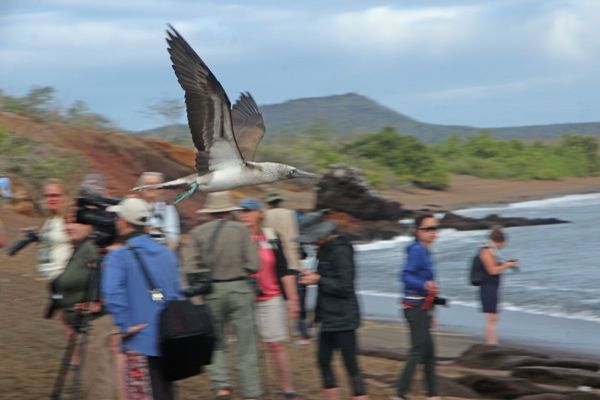 In the morning, we had an outing before breakfast, just so that we could use the time more efficiently and get the best light of the day for photography; we landed on Punta Cormorant. Here we started on a green-olivine beach where there is a small colony of sea lions and some blue footed boobies. Behind this beach there is a lagoon, where we found flamingos for the first time in the trip. These birds are a recent arrival to the Galapagos, making these residents of the Archipelago. At the end of the trail on a white sand beach, we visited an active sea turtle nesting site.