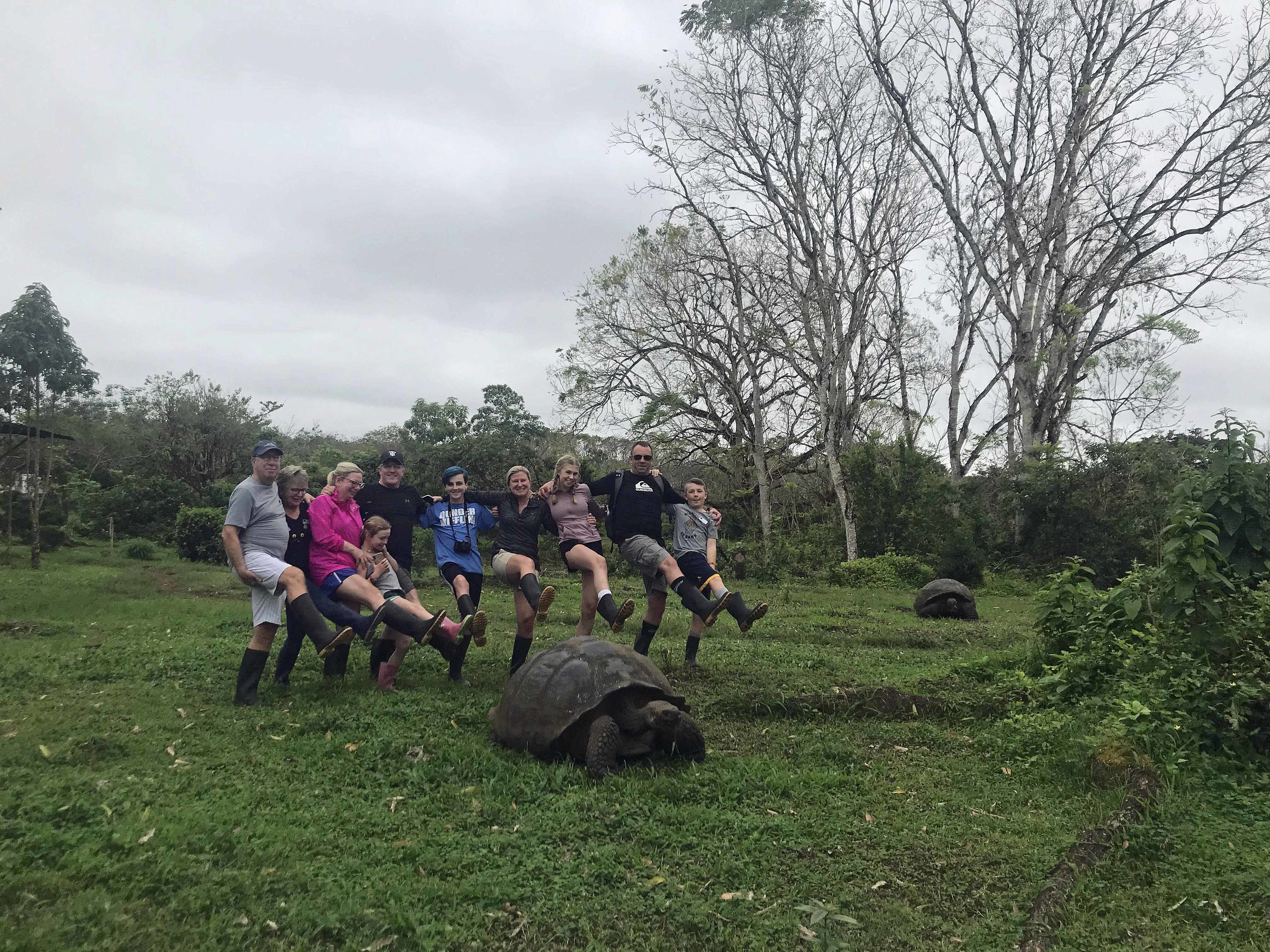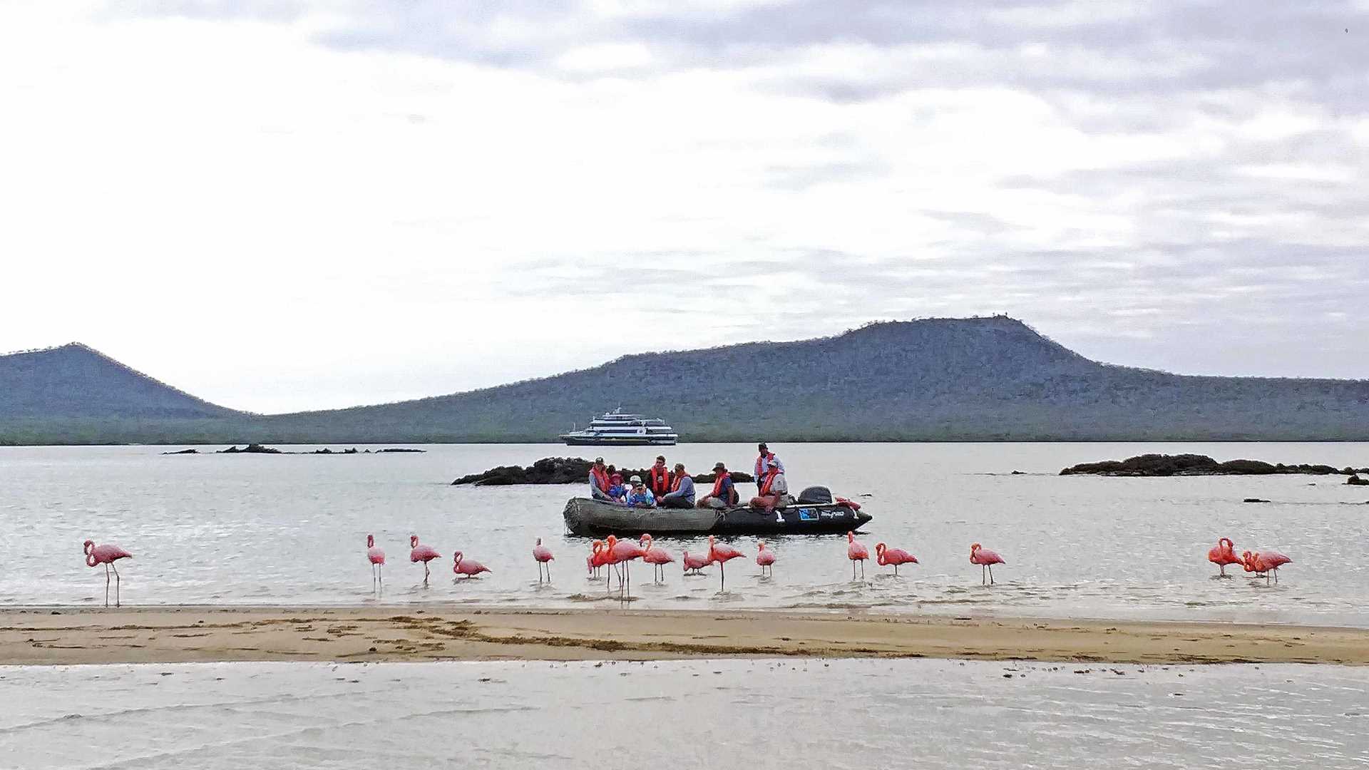 In the afternoon, we moved a close distance to Post Office Bay, a legendary place where the first man lived in the Galapagos from 1807 to 1809. Once Ecuador became a country, it claimed the islands in 1832, and since then many other people have tried to colonize the Galapagos. We disembarked on a green beach made of olivine and seashells. The shoreline here was filled with diamond stingrays. Then we walked behind the beach to learn about the first mailing system of South America, established in 1790. After mailing our post cards and learning about the island’s human history, we explored the bay; some of us on kayaks, others on paddleboards or Zodiacs. We rode in search of turtles, rays, and seabirds. The frosting on the cake for such a great day was a flock of flamingoes basking on a very small beach which separate the bay. That encounter was so close, and we loved every moment of it!