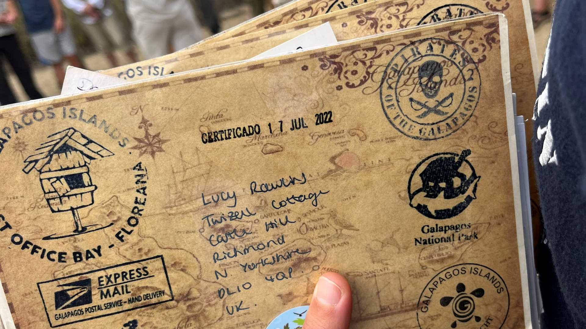 After lunch, our young explorers met in the library to make handmade postcards to be delivered at the traditional Post Office Bay later in the afternoon. Afterwards, we enjoyed so many activities, including kayaking, paddleboarding, and Zodiac rides. We spotted marine iguanas, sea lions, sea turtles, blue-footed boobies, and even some spotted eagle rays. We also visited the post office barrel, an important historical site on the islands. In the past, pirates and whalers used to leave their own letters and pick up other visitors’ letters to hand deliver back home. We kept the tradition alive today, and several guests picked up letters to deliver back home.