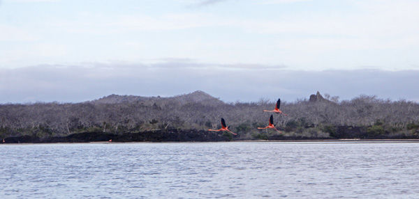 This morning we had an outing before breakfast so that we could make the most of the great lighting for photographs. We landed on Punta Cormorant on a beautiful beach where there is a small colony of sea lions and some blue-footed boobies. Behind this beach there is a lagoon where we found flamingos for the first time in the trip. These birds are a recent arrival to the Galápagos. We followed a trail and we were lucky enough to see an active nesting sea turtle site.