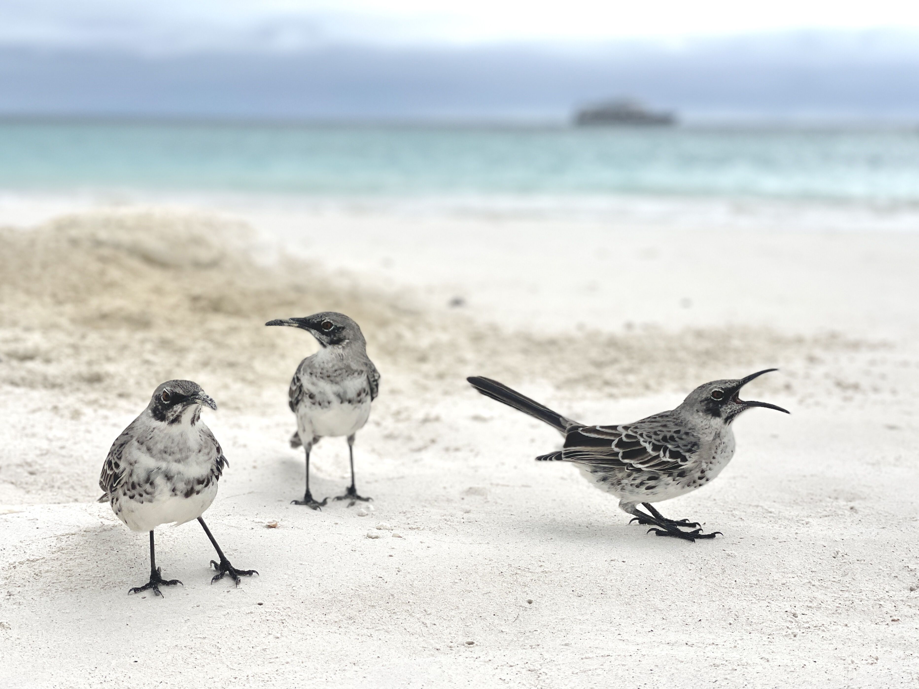 Today we started with an early walk over Cormorant’s Point, located on the north side of Floreana Island. Along the trail, we stopped by a saltwater lagoon where we encountered two flamingos. We also got the chance to appreciate the different colors of the different beach areas, and we took a lovely walk in a dry forest.