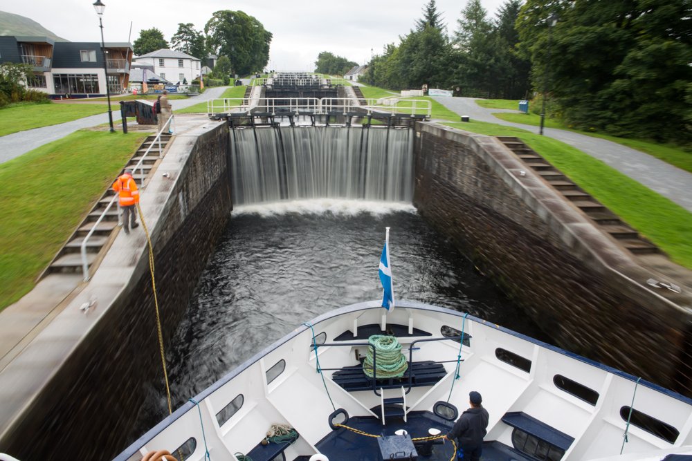 We cast our lines early at Corpach Basin to begin our transit of the Caledonian Canal from Scotland’s Atlantic coast in the west to the North Sea in the east. The Caledonian Canal follows a natural slip-fault that runs north-west to south-east across the Scottish Highlands and it was the great Scottish engineer Thomas Telford who won the government contract to build a canal through the Great Glen, a task he undertook between 1806 and 1823.