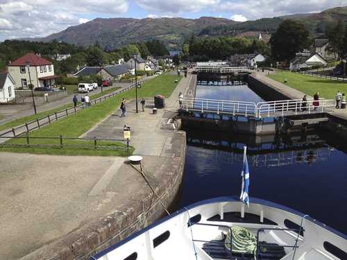 Morning highlights included the canal’s only surviving manually-operated bridge at Moy, the tranquil waters of Loch Lochy, the narrow tree-lined cutting known as Laggan Avenue and the shallow Loch Oich, the highest point of the canal at some 106 feet, navigated through a winding channel.