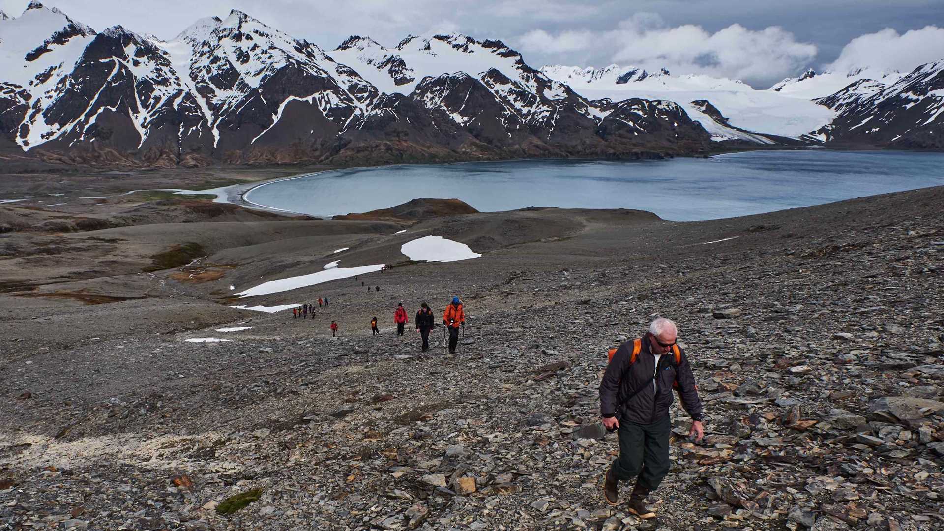 “In the darkening twilight I saw a lone star hover gem like above the bay.”  Those beautiful words were Ernest Shackleton’s last entry into his diary the night of the 4th of January 1922. Today was largely taken up with The Boss, as he was known to his men, for a good number of us walked the last few miles of the Shackleton walk; starting in Fortuna Bay and ending at Stromness Whaling Station. The rest of us were either able to walk up to the Shackleton Waterfall or catch glimpses of it from the old whaling station. No matter which activity we undertook we could but marvel at the incredible boat journey that he and five men undertook to reach the island of South Georgia and then three of them were to be the very first people to cross this island. It was an incredible feat and its success meant that the 22 men left on Elephant Island could be rescued.