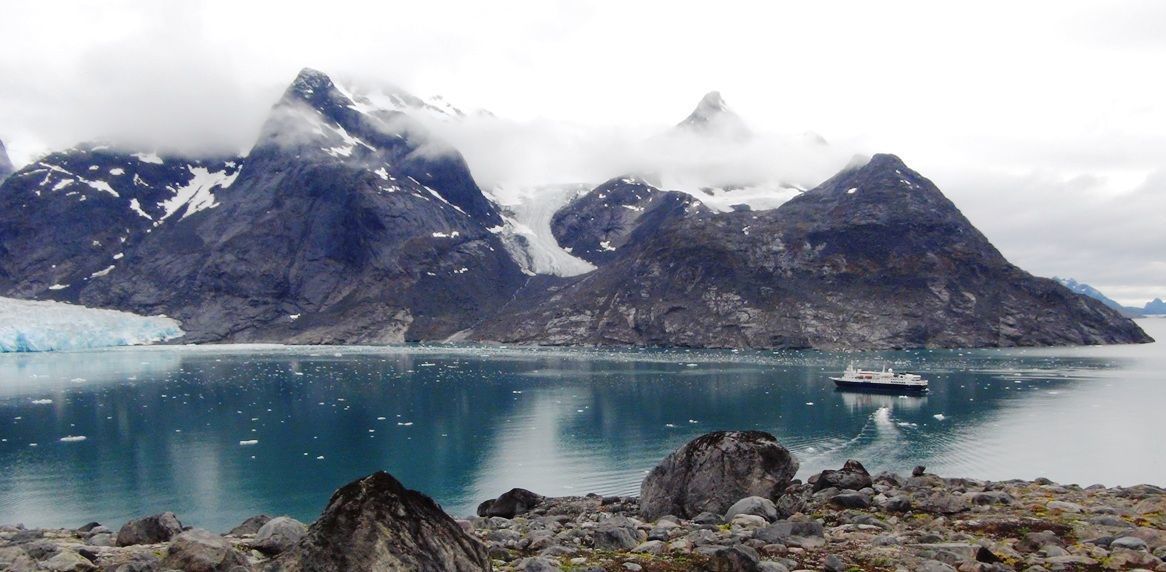This morning the weather was clear and cold as the ship entered the short but beautiful Fram Fiord. The countryside was amazingly stark but there is still life here on Ellesmere Island, an island with the third most amount of glacial ice in the world after Antarctica and Greenland. Some 75,000sq.km of the island is covered in icecaps and glaciers. This morning there were two different offerings, Zodiac rides or walks ashore in search of the elusive muskox. The walking on the ancient granitic rock was challenging at times but worth it for the groups that were able to get close enough to see the shaggy guardians of the North fairly close. Making our way up the valley many of the walking groups could view the muskox as they selectively browsed the Arctic willow and other plants before fall and then quickly winter will set in.
