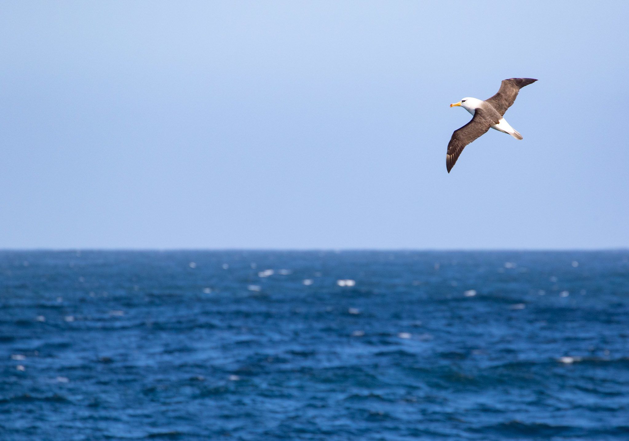 Today we left South America behind and enjoyed following seas and wind on our way to the Falkland Islands. After spending the entirety of our voyage with land in sight, it was refreshing to wake with ocean surrounding our ship all directions with nothing but sky on the horizon. However, this is not to say there wasn’t anything to see! Wildlife was abundant today. Seabirds were our constant companions as well as bow-riding dolphins. This open ocean is the realm of seabirds. From the tiny storm-petrels to the massive albatross, these birds were taking advantage of the winds to effortlessly glide in search of food. Birds surface from all over the globe to enjoy the richness of this area, much the same as we have. Royal albatross from New Zealand, wandering albatross from South Georgia, and black-browed albatross from the Falklands. All concentrating on this stunning part of the globe.