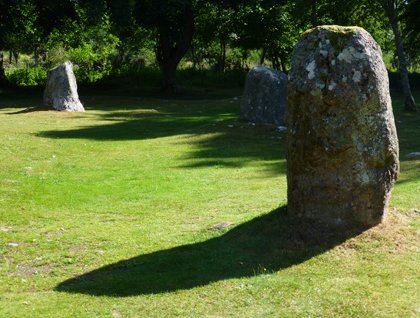 From there we drove all of two miles to Clava Cairns, crossing a narrow “Weak Bridge” over the River Nairn. No problem for Graham Urquhart, our highly skilled driver! More than 4,000 years ago, Bronze Age locals chose the flat river terrace to construct two hemispherical stone tombs, each designed for a single occupant and with the passage leading to the burial chamber precisely aligned on the setting sun on midwinter’s day, 21st December. Standing stones positioned around the burial cairns and the ring cairn indicate links with other megalithic monuments throughout Britain which used the “megalithic yard” as a common unit of measurement and were aligned on solar and lunar events and constellations. At Clava we were able to enter the tombs and touch the ancient rocks. Iris gave a brief presentation to explain the site and put it in context.