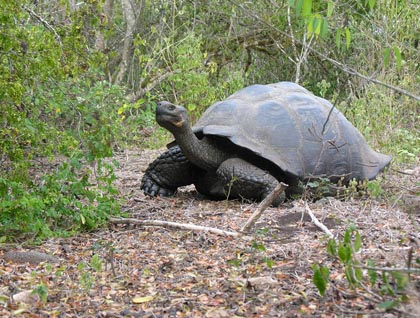We disembarked at 6:30 am, an early beginning at Santa Cruz Island with a promise of a great adventure. Welcome to civilization! We landed at Puerto Ayora’s main dock and then with the buses we drove up to the highlands. On the way there we were able to observe how the vegetation changed from the leafless incense trees to papayas, citrus plants and bananas. We were heading towards ‘El Chato’ giant tortoise reserve; this hike up to one mile in led us to two young giant tortoises and then to an enormous male! We enjoyed taking our time in order to let this huge tortoise come closer; it is always amazing to be observed by animals, something that happens in the Galápagos Islands, an unusual and unique place on earth. Before the well deserved breakfast, we walked through a lava tube, where we were witnesses to the formation of the islands. Later, when we came back to town, there was time for phone calls, internet and shopping!