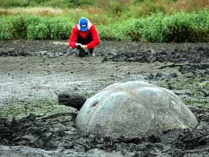 When people come to the Galápagos Islands, they expect to see a few tortoises along the week. After all, it was the tortoises that gave the name to the islands ever since Fray Tomas de Berlanga landed on this archipelago in 1535. He saw these creatures and described them as “Galápagos,” which meant saddle. Now Galápagos has different connotations, such as “giant tortoise,” “saddle” (a specific kind), and it is the name of this enchanted group of islands. But one can never image that an encounter with tortoises would mean a walk among several of these gigantic monsters (in the good sense), freely roaring around, peacefully resting in mud pools. The walk this morning brought us to one of the best areas to spot tortoises in the wild, El Chato, in the highlands of Santa Cruz. We saw males that could easily weigh four hundred pounds and could easily be a hundred years old. We walked through dense vegetation and heard warblers and finches singing along, while tortoises kept doing their thing, oblivious to our presence.