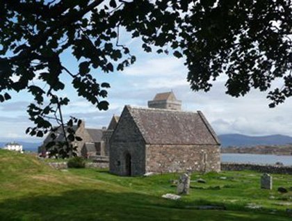 Mull is the third largest of the Scottish islands, with 300miles of incomparable coastline and arguably the best wildlife community in Britain: countless otters, seals and dolphins, over 3,000 wild red deer and 33 pairs of golden eagles, the highest concentration in Europe. But it was not to be a day for eagles, with low clouds over the mountains and drizzles sweeping in from the west as we threaded the braes and glens of the mountains. The core of Mull is gigantic volcano which erupted 60million years ago; following the shoreline of Loch Scridain, the sea loch which leads to Iona, we could see the hillsides terraced by the successive sheets of lava which poured out from its core, building one atop the other in layers. Our driver, Steve, kept up an entertaining soliloquy as he deftly dodged cars on the long single-track road, creating as he spoke a lyrical account of the geology, culture, music, superstition, natural and human history of Mull, leavened with his own humorous musings on life. Was it his Celtic conjuring, or the kiss of Columba which turned a grey day into blue sky by the time we reached the Iona Ferry? The last test of pilgrim faith was the ferry crossing: Force 6 winds had churned the Sound of Iona into surging whitecaps, but there was a spectacle even here, with squadrons of black shags beating upwind, and pure white gannets slicing diagonally into the waves to skewer fish from the hidden shoals.