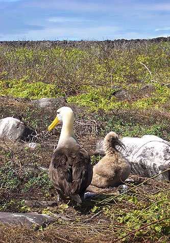 This is the home of Galápagos waved albatross and their chicks, blue footed boobies, Nazca boobies, big lava lizards, lots of finches, Hood mocking birds, Galápagos doves and we even saw a baby Galápagos hawk.