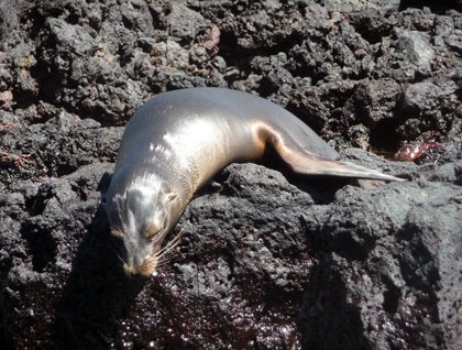At noon, the National Geographic Endeavour sailed to Santiago Island where we visited the home of the Galápagos fur seal, and had another chance to snorkel. This time we saw sea turtles. After, we went for a walk along the shore of Puerto Egas.