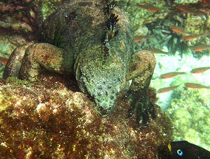 The morning started to get a little warm, so we all returned back on board the National Geographic Endeavour. Every chance to explore the underwater world of the Galápagos Islands is to be seized, so several groups of snorkelers made their way to Guy Fawkes, offshore Santa Cruz Island. This semi-eroded tuff cone is a spectacular place, with its colorful underwater wall covered with marine invertebrates, large schools of fish and the occasional playful sea lion.