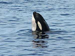Because the conditions were so good and the whales seemed to be very much at ease, we decided to lower a Zodiac in an attempt to get some underwater footage of them with the splash cam. I threw all the gear into a boat, and in a matter of minutes with Jim driving and Lisa monitoring the recording, we were on our way. A slow approach kept the animals very comfortable with our presence and soon Lisa was giving me rapid fire camera direction, and we were getting on tape some great views of the sleek black whales rising to the surface to breath and then gracefully diving with a few languid strokes of their tails.
