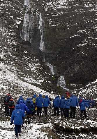 Hiking and history made for a wonderful combination this afternoon in Stromness Harbour. The derelict whaling station here is now best known as the place where, in 1916, Tom Crean, Frank Worsley, and Ernest Shackleton finally contacted the outside world at the end of their disastrous Imperial Trans-Antarctic Expedition. Many of us retraced their final few miles, braving the rainy, bleak conditions to climb the mountain pass from Fortuna Bay and descend into the Stromness valley adjacent to the famous waterfall that proved to be the final obstacle for the men 94 years ago.