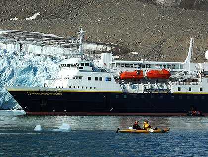 After traveling north the entire night, the National Geographic Explorer found her way into Woodfjorden, a deeply incised fjord along the north shore of Spitsbergen. The day’s weather was as still as the previous was windy.