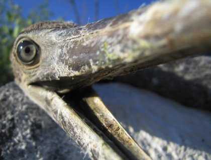 At Pta. Suarez the afternoon was bright and hot. With the rising tide and the calm ocean, not very many sea lions were swimming there; instead they were all snoozing on the beach. Before we even landed, it was already possible for us to see abundant albatrosses flying off the south eastern cliff of the island. We even found some of them already taking possession of their future nest sites, "roosting" on the bare lava rocks of the trail. There are fewer Nazca boobies now, but they are busy doing a good job raising their offspring. One was trying hard to eat my camera!