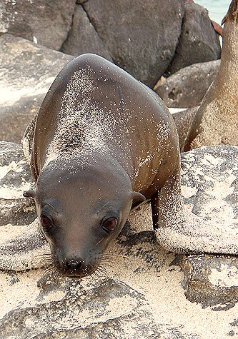 This morning our destination place was the gorgeous Gardner Beach. Here we found a long, white-coralline beach, surrounded by turquoise waters, where we could relax or watch the various species of animals. A huge colony of Galápagos sea lions made everyone’s delight, interacting alongside their very private beach. The usual beach inspector, the Espanola mockingbird, made its appearance while busily searching for food in the sand.