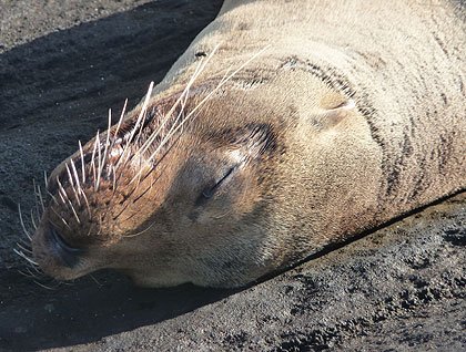 On Santiago, our guests enjoyed snorkeling in very clear water, where they saw several green pacific sea turtles and colorful fish. After about an hour, we started a walk on the intertidal zone of Santiago at low tide. In this place, we found several unique marine iguanas basking in the very last sunrays of this interesting afternoon. We also saw Galápagos fur seals waking themselves up to start their nocturnal hunting habits.